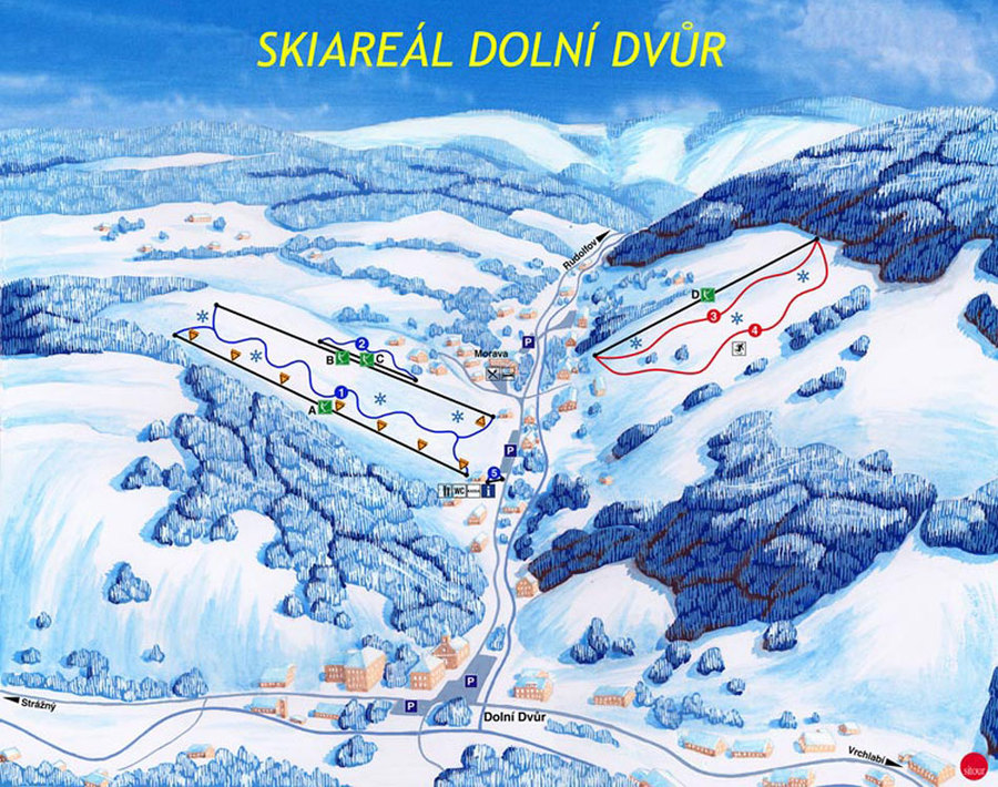 SKIPARK Dolní Dvůr leží v samém srdci Krkonoš, 6km od Vrchlabí, 8km od Černého Dolu.