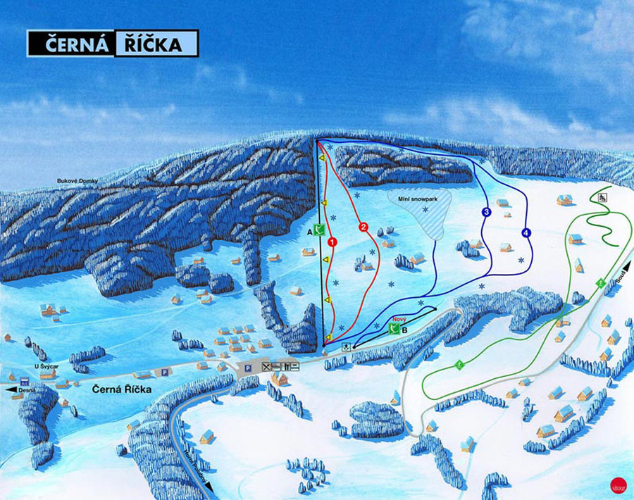 Černá Říčka je část obce Desná pod údolní přehradou Souš, která se nalézá v srdci Jizerských hor a svojí nadmořskou výškou se řadí na 1.místo v této oblasti (680 – 785 m.n.m). Středisko svou polohou a nadmořskou výškou nabízí ideální podmínky pro lyžování na přírodním sněhu a díky tomu je zde lyžařská sezóna velmi dlouhá a obvykle trvá od prosince do dubna a jistota sněhové pokrývky je zde téměř zaručena. Kvalita lyžování je zajišťována denní strojovou úpravou všech sjezdových tratí, které jsou dosněžovány za pomoci systému umělého sněhu, jež pokrývá 60% sjezdovek. Terény jsou vhodné pro pokročilé, méně pokročilé, ale i začátečníky a rovněž i pro snowboard, pro který jsou zde budovány skoky, raily atd. Denně je v provozu velmi kvalitně osvětlený svah, který je před začátkem večerního lyžování upravován. Ve středisku je též dětský provazový vlek se školičkou lyžování, lyžařský servis a půjčovna, lyžařská a snowboardová škola Parkování je zajištěno přímo u dojezdu vleku s dostatkem parkovacích míst a zajišťuje tak pohodlnou dostupnost. Ve spodní části se rovněž nalézá bufet s pestrým výběrem občerstvení.