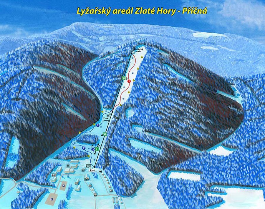 Vlastníkem i provozovatelem Lyžařského areálu Příčná je město Zlaté Hory. Součástí Lyžařského areálu Příčná ve Zlatých Horách je sjezdová trať, 4-sedačková lanová dráha Doppelmayr, obslužné objekty A,B,C, objekt zázemí lanové dráhy, systém technického zasněžování vč. přivaděče vody, akumulační nádrže, čerpací stanice a dodávky sněžných děl, dále trafostanice, osvětlení sjezdovky, přípojka nízkého napětí, přeložka vysokého napětí, připojení všech objektů k přívodu el. energie, rozvody vodovodu a kanalizace a rolba.