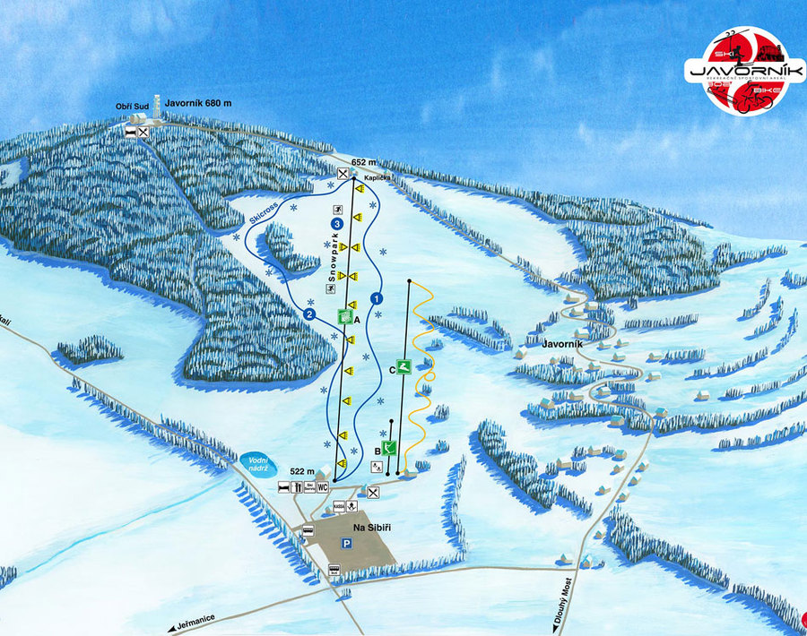 Bobová dráha má vlastní vlek 550m na horní stanici a převýšení 80,5 m. Ve spodní části areálu je možnost rychlého občerstvení v tzv. Deštníku a ubytování v provozní budově. Celý areál je bez bariérový. Nechybí zde ani půjčovna lyží a snowboardů, servis ,či lyžařská škola. Parkování zdarma. Novinkou je nové dětské hřiště a obory se zvířaty. Od 1.10 2011 je otevřen Obří sud,restaurace a penzion,který se nachází v lese na kopci Javorník, 400 m od horní stanice lanovky. Zde je další možnost ubytování. K Obřímu sudu návštěvníky sveze povoz, tažený koňmi. Další novinkou jsou slevy na teplá jídla v Obřím sudu v ceně permanentky. Další možnost stravování je přímo ve správní budově,u nástupu na lanovou dráhu,kde je výběr vždy z dvou menu.