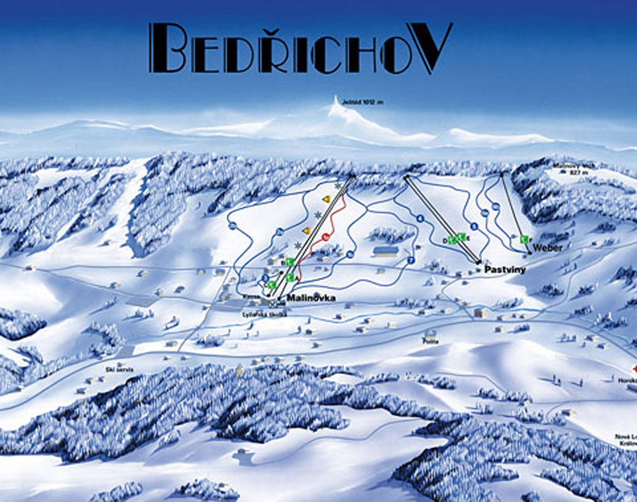 Ski areál Bedřichov se nachází v centrální části Jizerských hor. Sjezdové tratě nabízí lyžování na rozhlehlých sjezdových tratích střední a nízké obtížnosti. Díky tomu jsou vhodné zejména pro rodiny s dětmi a školní lyžařské kurzy. Areál s širokým výběrem přepravních zařízení je vybaven systémem technického zasněžování. Ski areál nabízí večerní lyžování na lyžařském vleku Malinovka. Parkování zdarma v ceně jízdenky přímo u Malinovky.