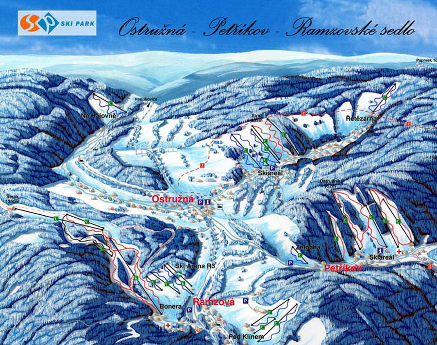 Populární lyžařské středisko Petříkov nazývané „malý moravský Kitzbühel" se nachází 2 km od Ramzovského sedla a leží v jednom z nejkrásnějších údolí centrálních Jeseníků. Do tohoto Petříkovského údolí je možno se dostat nejen autem, ale i vlakem (nádraží Ostružná, resp. Ramzová).