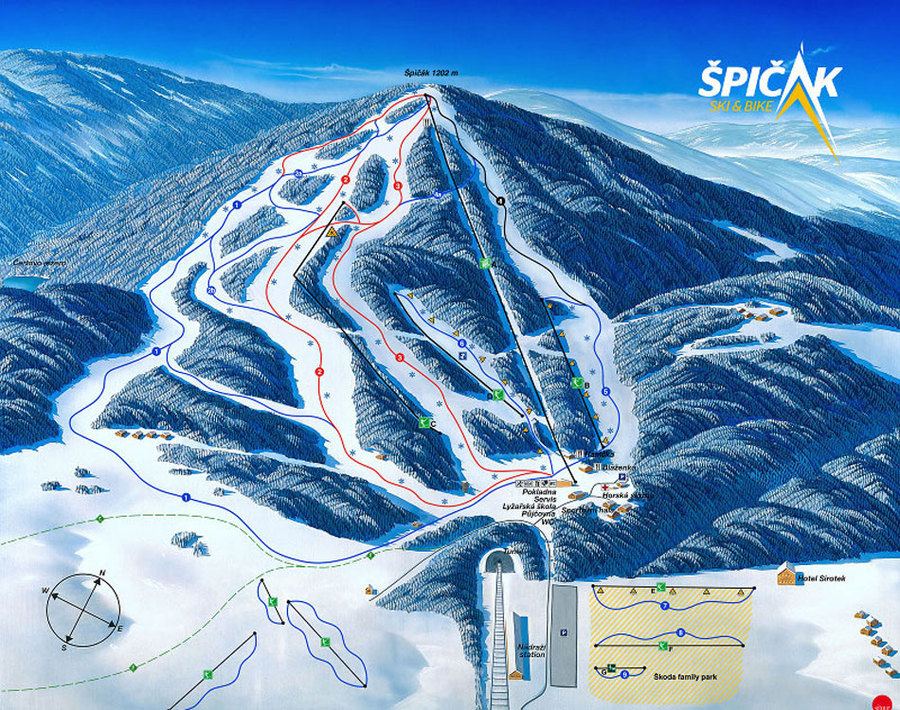 Sportovní i rodinné lyžování, adrenalin i pohodu vám nabídne největší zimní středisko na české straně Šumavy Ski&Bike Špičák. Patří mezi nejlepší pětihvězdičkové TOP areály v ČR. Nejprudší sjezdovka v ČR – Šance, se sklonem 100%, ale i široké modré sjezdovky pro carvingový oblouk nebo samostatný areál pro děti a začátečníky s pohyblivým kobercem. Proslulá lyžařská škola s nejlepšími instruktory v oblasti, k dispozici půjčovna lyžařského vybavení. Sedačková lanovka a vleky denně v provozu od 8:30 do 16:00, večerní lyžování ve středu, pátek a sobotu od 18,30 do 21,00. Trasy pro skialpinisty včetně půjčovny vybavení. Desítky kilometrů upravovaných běžeckých tras. Na vrcholu Špičáku a v celé dolní části areálu včetně nástupu na lanovku je k dispozici volná wi-fi síť. Výběr ubytování on-line na www.spicak.cz