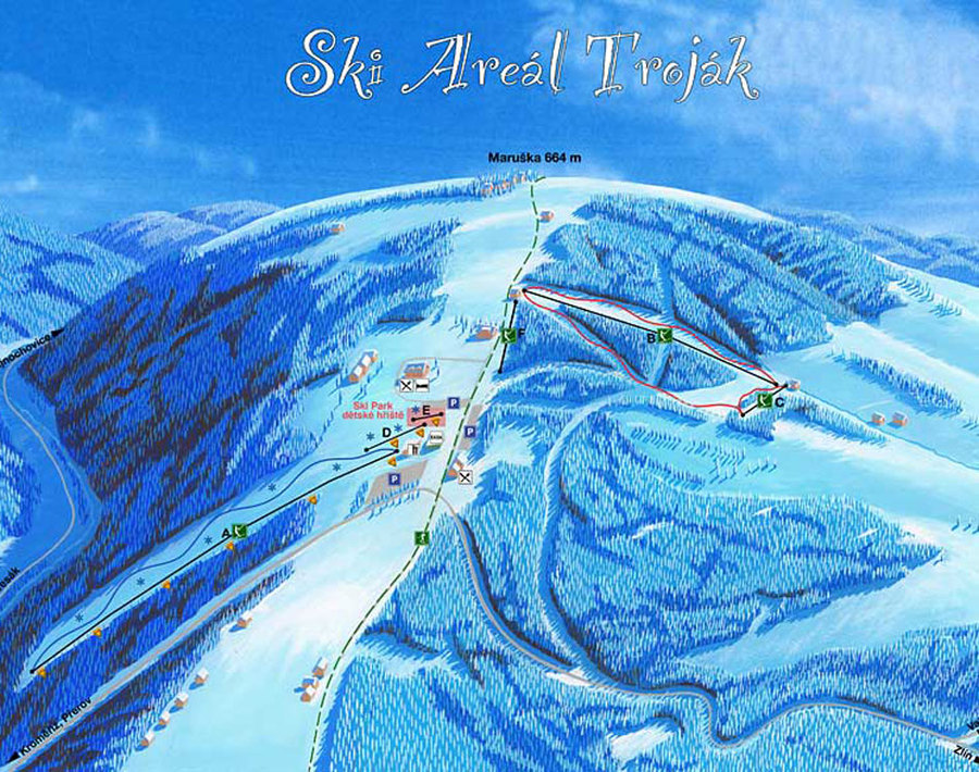 5 lyžařských vleků má kapacitu 2 200 osob za hodinu. Lyžařské středisko svými terény uspokojí rodiny s dětmi, lyžaře začátečníky i pokročilé lyžaře. Lyžařský prostor hřebene na Trojáku umožní návštěvníkům také možnost běžeckého lyžování. Lyžařské stopy jsou vedeny oběma směry po hřebenu na Tesák, Tři kameny, Hostýn až do Bystřice p.H. Na opačnou stranu na Bludný, Čečetkov, Lazy až do Valašského Meziříčí.