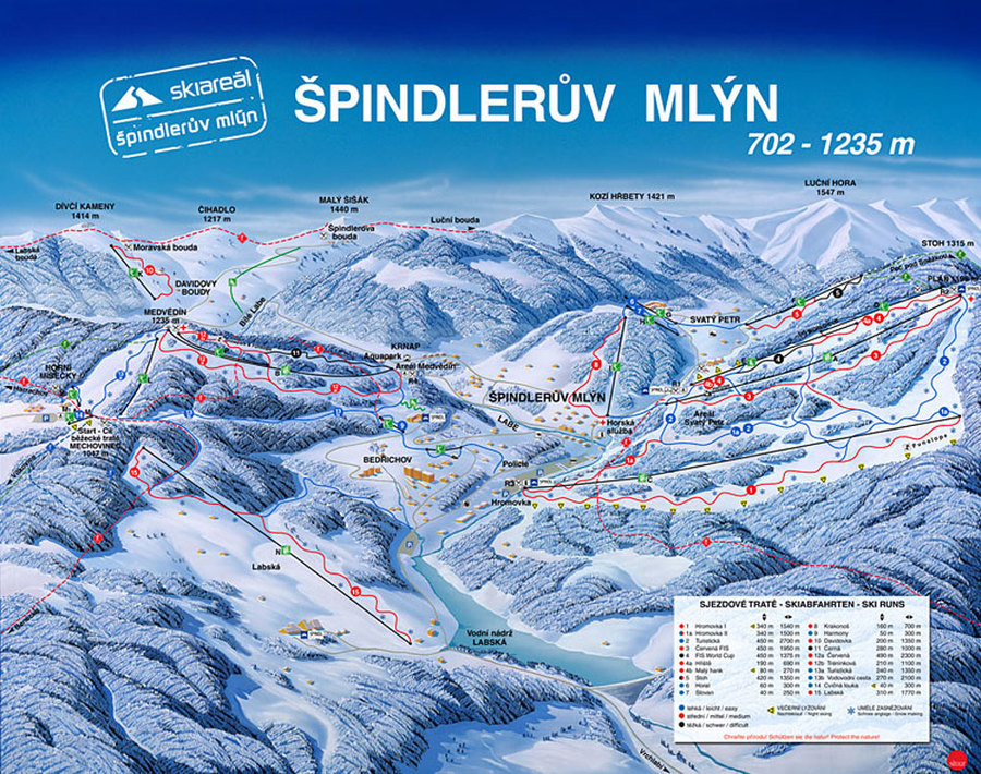 Lanová dráha Medvědín, která vede do nadmořské výšky 1 270 m n.m., je ideálním spojením Horních Míseček se Špindlerovým Mlýnem. Nachází se zde sjezdové tratě všech obtížností pro náročné i začátečníky. Všechny sjezdovky na Medvědíně a Horních Mísečkách jsou technicky zasněžovány. Zasněžovací systém je rozveden až na běžecký stadion.