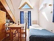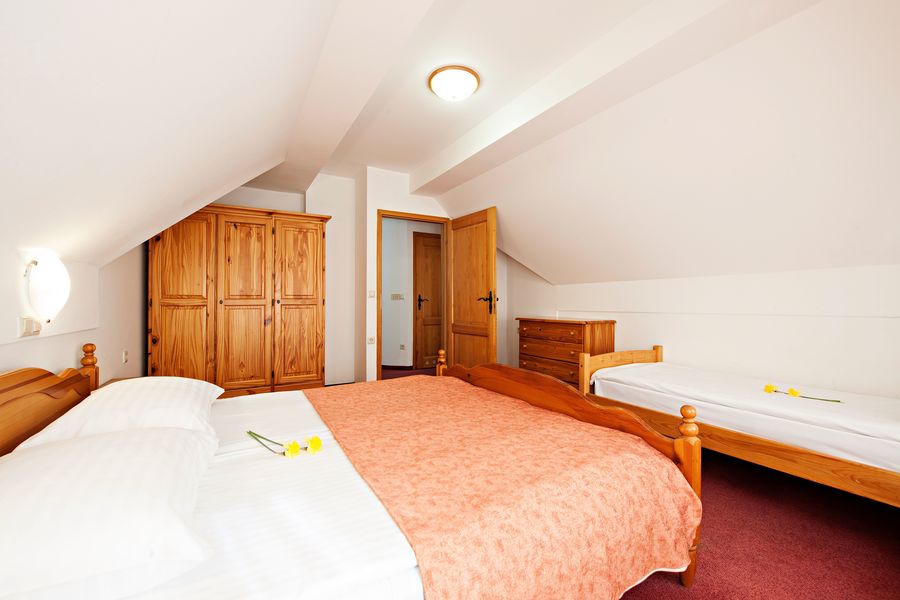 K dispozici jsou klimatizované apartmány pro 2 až 3 osoby nabízející ideální svobodu a pohodlí pro ty, kteří upřednostňují pobyt ve velmi kvalitních apartmánech (4*) chatového stylu před hotelem. Pro úplné pohodlí zde naleznete moderně vybavenou koupelnu se sprchou, WC i fénem, dvoulůžkovou ložnici na otevřené galerii, denní místnost s možností přistýlky, nebo můžete relaxovat na terase s výhledem na pláně Prekmurje.
